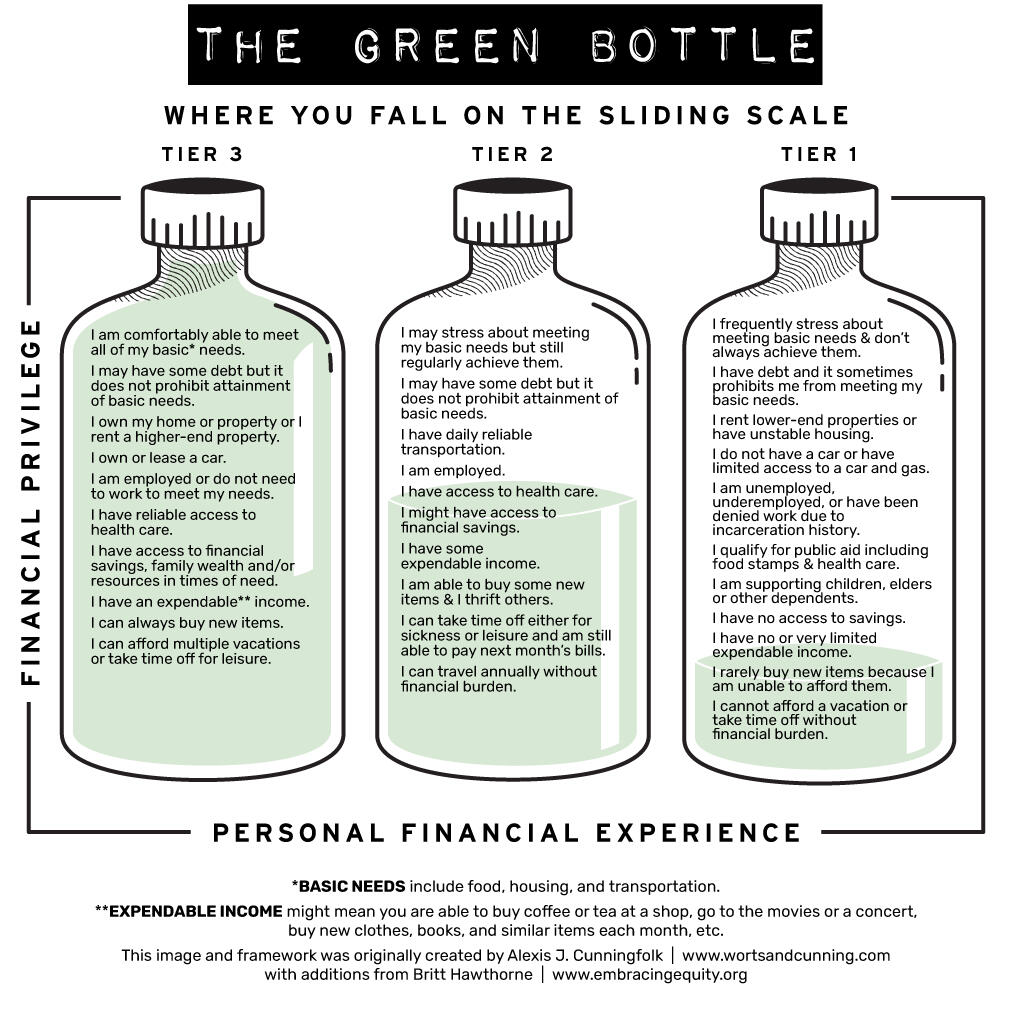 Tattoos are a luxury! While I am very grateful to clients who save to afford this luxury, I don’t wish to exclude less-privileged people from the joy of getting tattooed. To combat this, I offer a few sliding scale appointments every time I open my books. Your tattoo project could be anywhere from $125-150/hr on this scale!Please understand that I can only accept 2-3 sliding scale appointments per month - any more would compromise my ability to meet my personal income needs. I prioritize clients interested in larger-scale or multi-session work for this sliding scale, as this is typically the kind of work that is most inaccessible to less-privileged clients.Here is a helpful visual for assessing where you may lie on the scale of financial privilege!